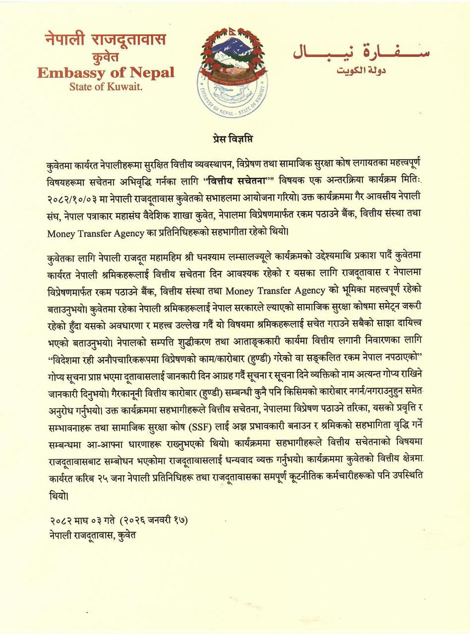 प्रेस विज्ञप्तिः ३७ जना नेपालीहरूलाई उद्धार गरिएको सम्बन्धमा।